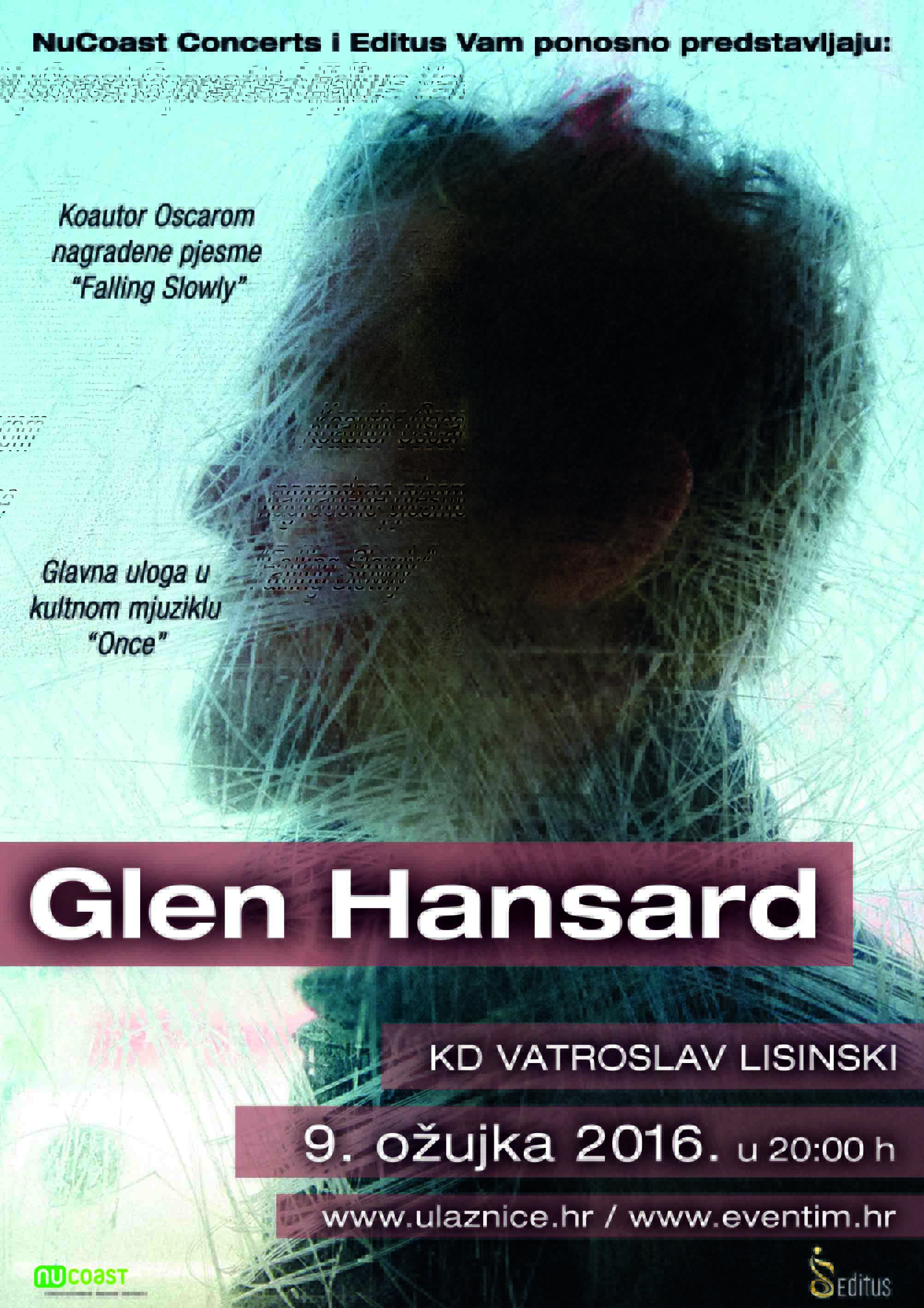 Jedan od autora pjesme “Falling slowly” nagrađene Oscarom, premijerno će nastupiti u Hrvatskoj, 9. ožujka 2016. u koncertnoj dvorani Lisinski. Pridružit će mu se i kantautorica istoimenog hita i dobitnica Oscara – Markéta Irglová.